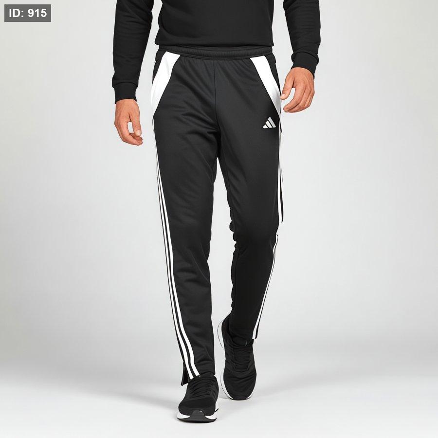 بنطال التدريب تيرو 24 سليم من أديداس للرجال - لون أسود وخطوط جانبية لون أبيض